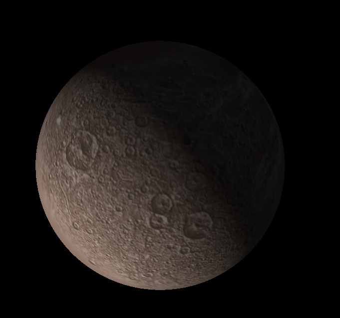 | Grawitacja (przyspieszenie): | ok. 42,4 x mniejsza niż na Ziemi (0,231 m/s2) |