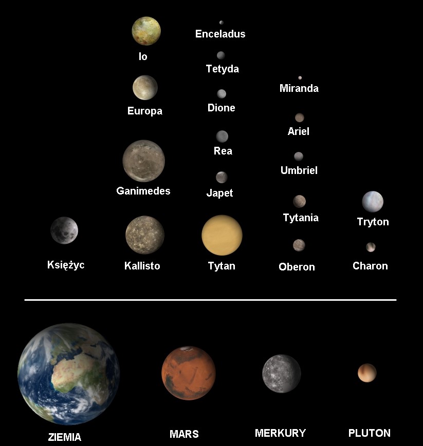 Porównanie rozmiarów największych księzyców w Układzie Słonecznym
