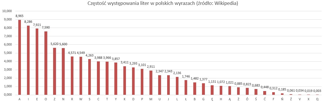 Poniższe zestawienie prezentuje procentowy udział wyrazów w języku polskim według liter je zaczynających.
