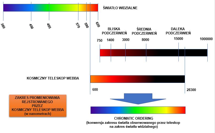 Zakres promieniowania rejestrowanego przez Kosmiczny Teleskop Webba